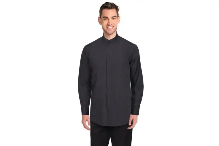 Mens Black Banded Collar Shirt