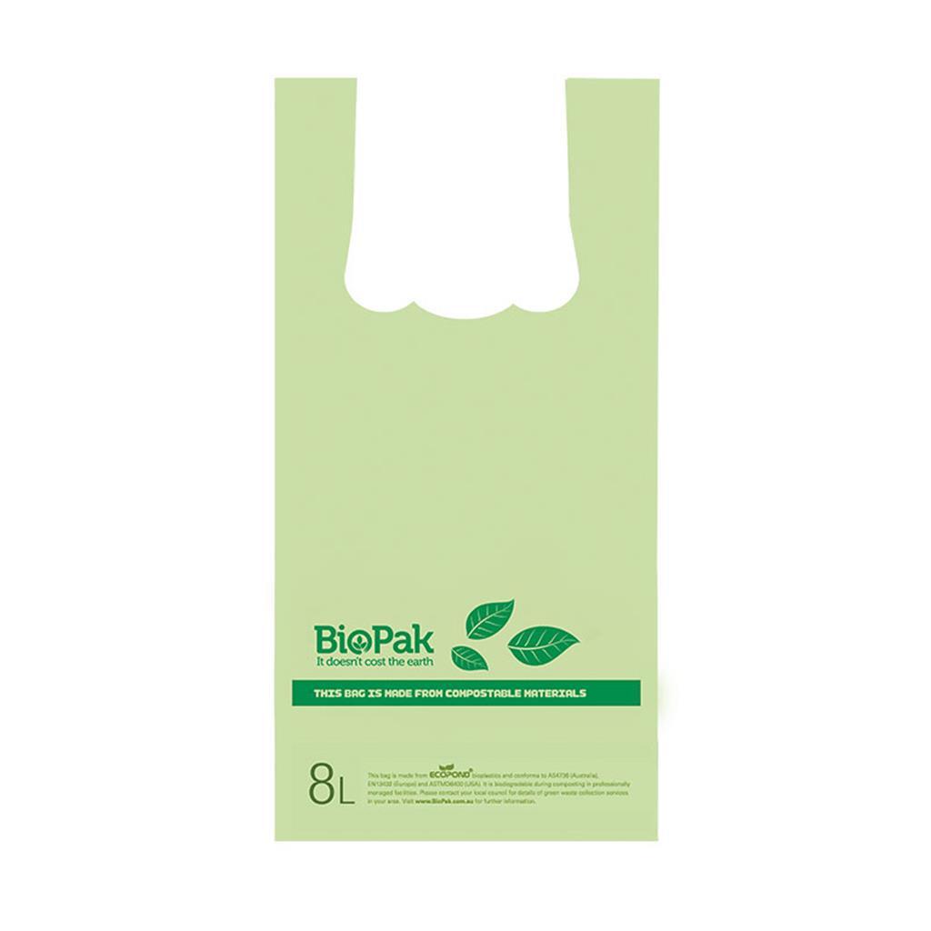 Our BioPlastic Bags are made from Ecopond bioplastic. These 8L bioplastic checkout bags are certified home compostable to European standards and compostable to ASA736-2006 Australian standards. These compostable bags are an environmentally friendly alternative to plastic checkout bags. Bioplastic bags with handles are banned as carry bags in QLD, VIC, NSW & WA. They are accepted if not used to carry goods (for eg. as bin liners or dog waste bags).