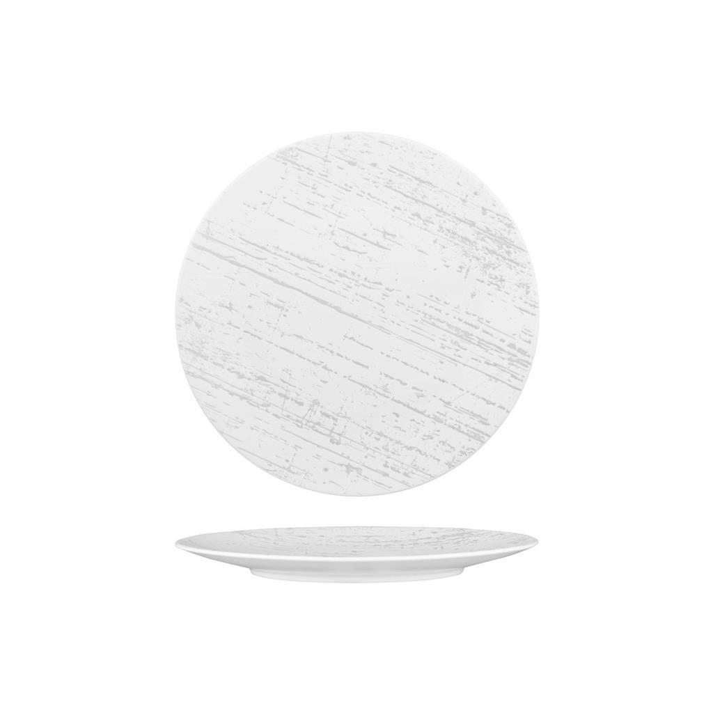 Round Flat Coupe Plate, White With Grey, 225mm